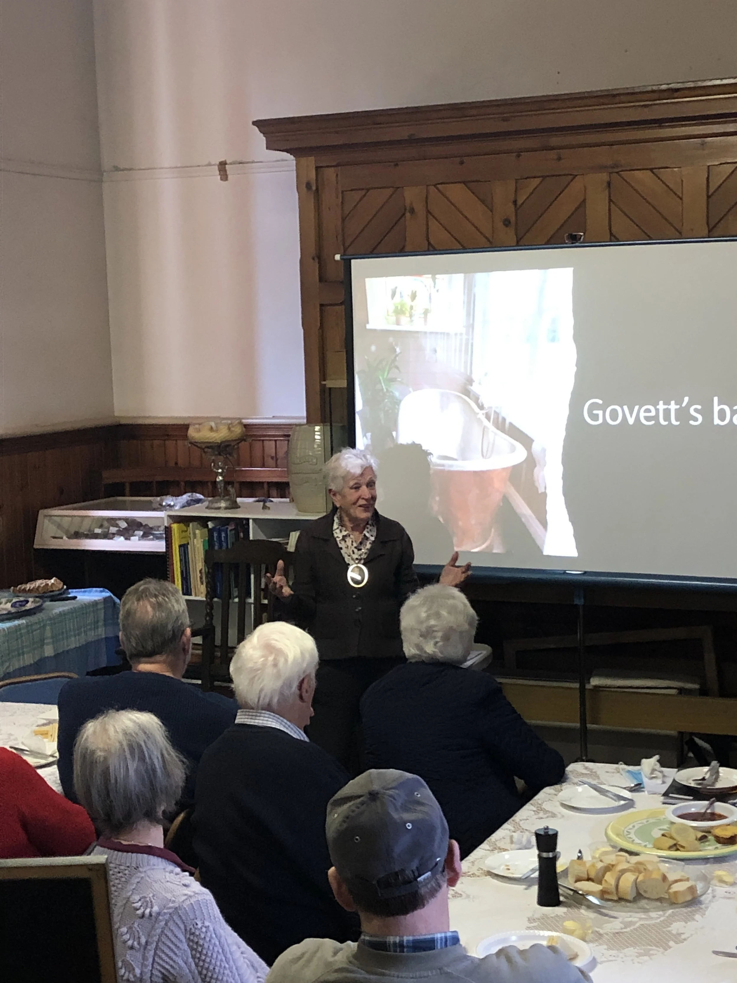 Wearing the miniature painting of George Govett, President, Dimity Reed’s talk about the painting fascinated her audience. And a fine lunch was enjoyed by all.